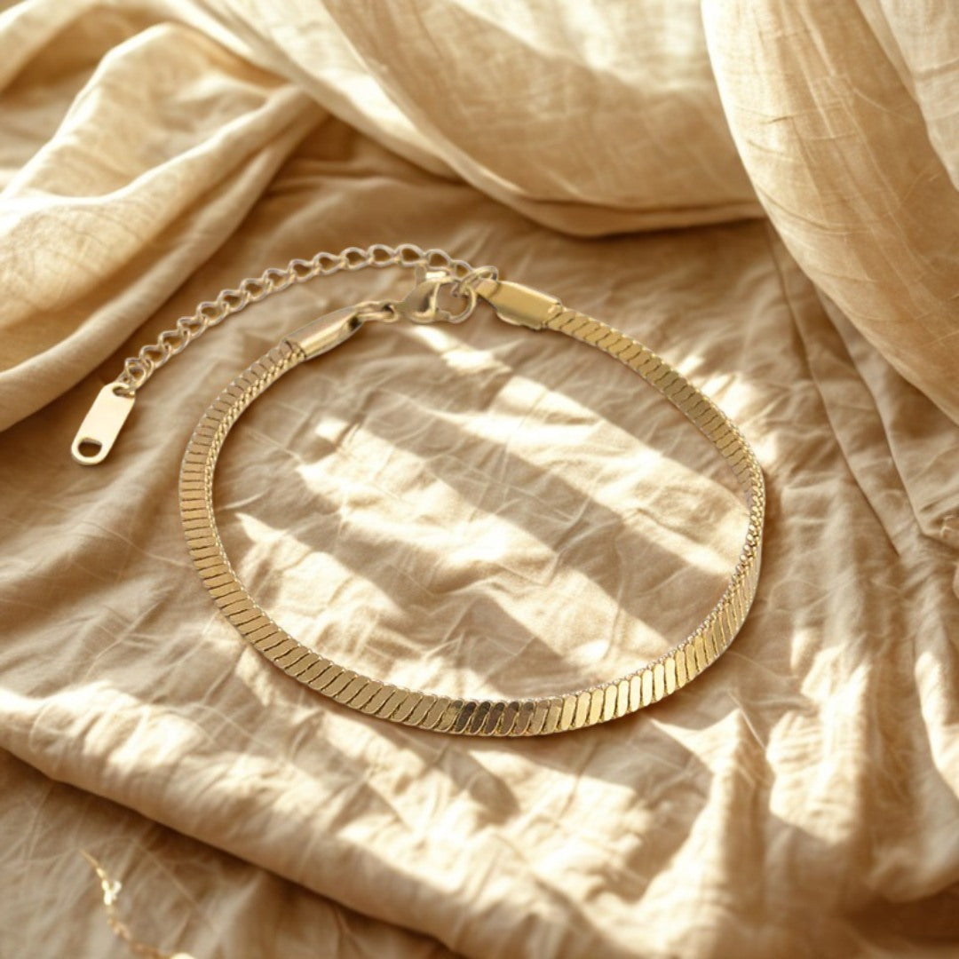 Ce bracelet fin à maille serpent se distingue par sa ligne fluide et sa brillance subtile. Un design minimaliste et raffiné, parfait pour ajouter une touche d’élégance à vos tenues du quotidien.