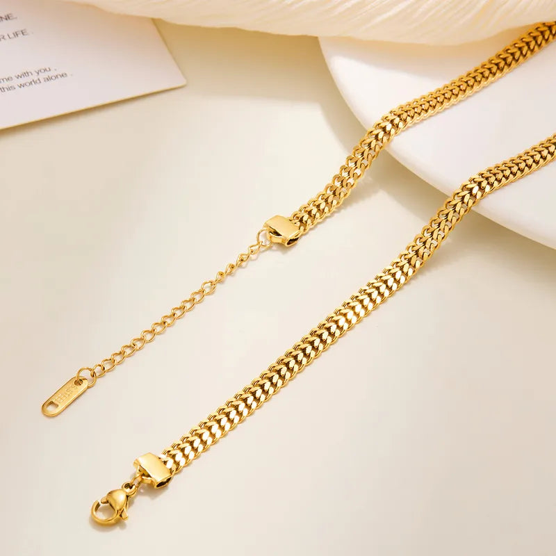 Ce bracelet doré se distingue par ses maillons élégamment travaillés. Il apporte une touche de modernité et de lumière à vos tenues, tout en conservant une ligne intemporelle et affirmée.