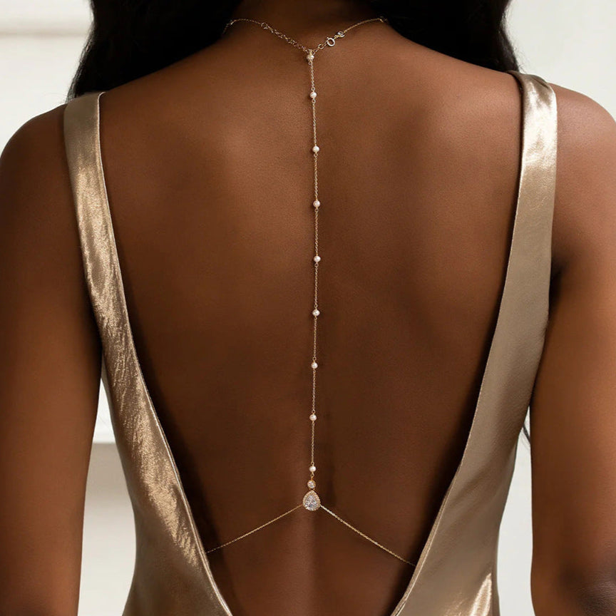 Une chaîne de dos élégante qui sublime la nuque et le dos avec délicatesse.