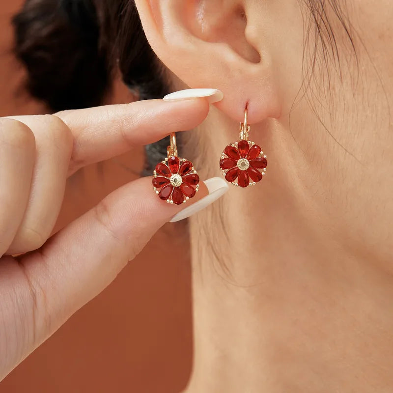 Ces boucles d’oreilles en forme de fleur mêlent élégance intemporelle et couleurs profondes. Disponibles en rouge passion ou bleu royal, elles apportent une touche sophistiquée et lumineuse à n’importe quelle tenue.
