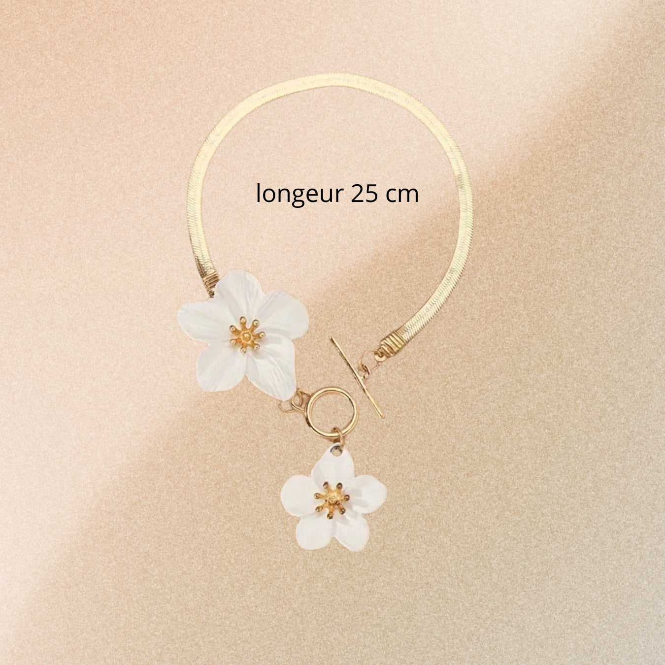 - Chaîne dorée simple ornée de deux fleurs vertes