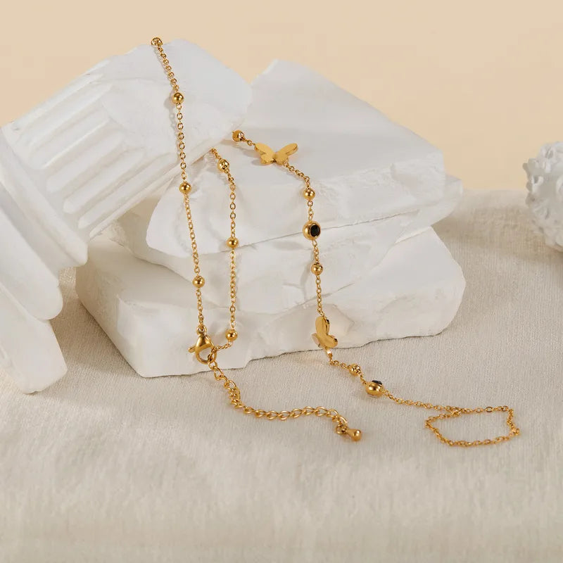 Son design fin met en valeur de jolis papillons dorés accompagnés de petits strass pour un effet brillant discret. Ce modèle inclut un lien ajustable qui s’étend jusqu’à l’orteil, parfait pour ajouter une touche originale à un look estival.