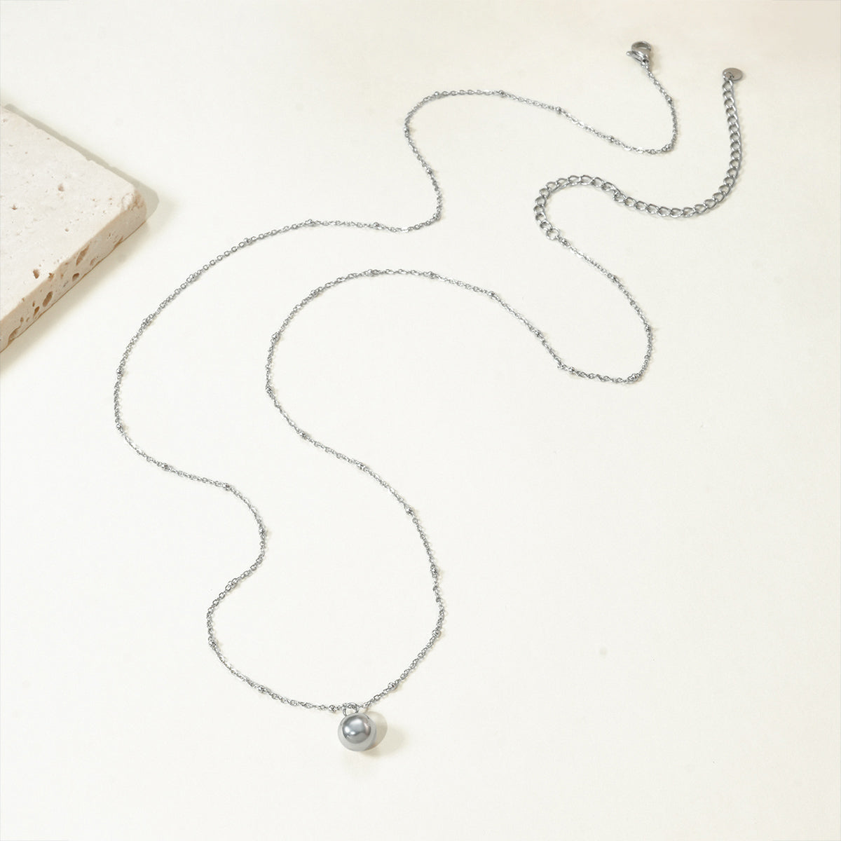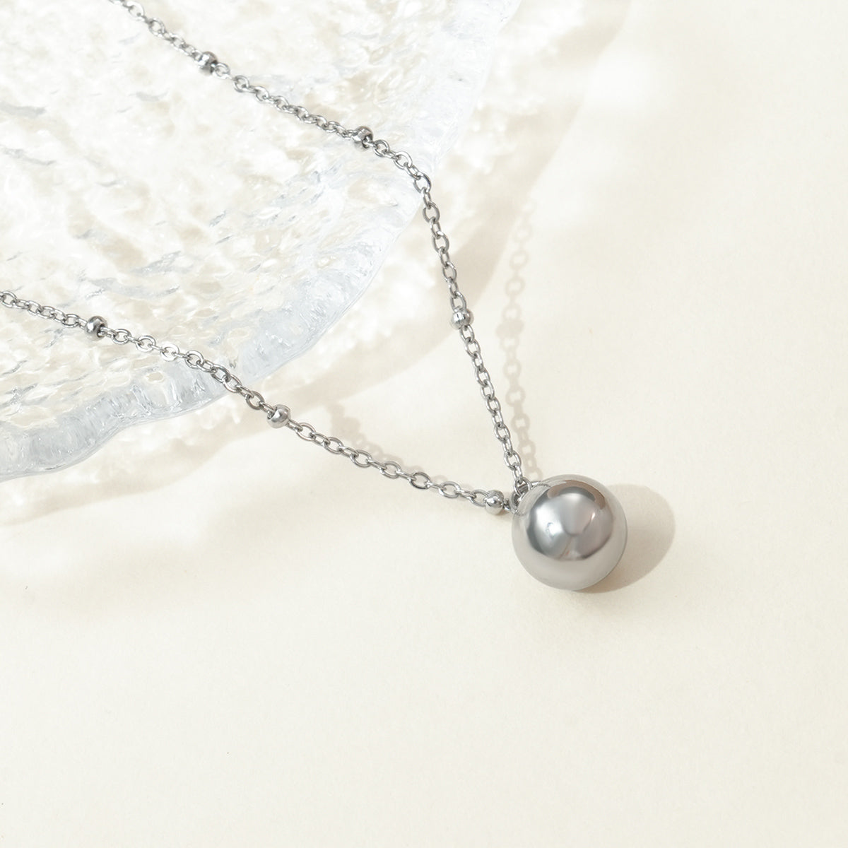 - Chaîne fine argentée avec perle centrale lisse finition miroir