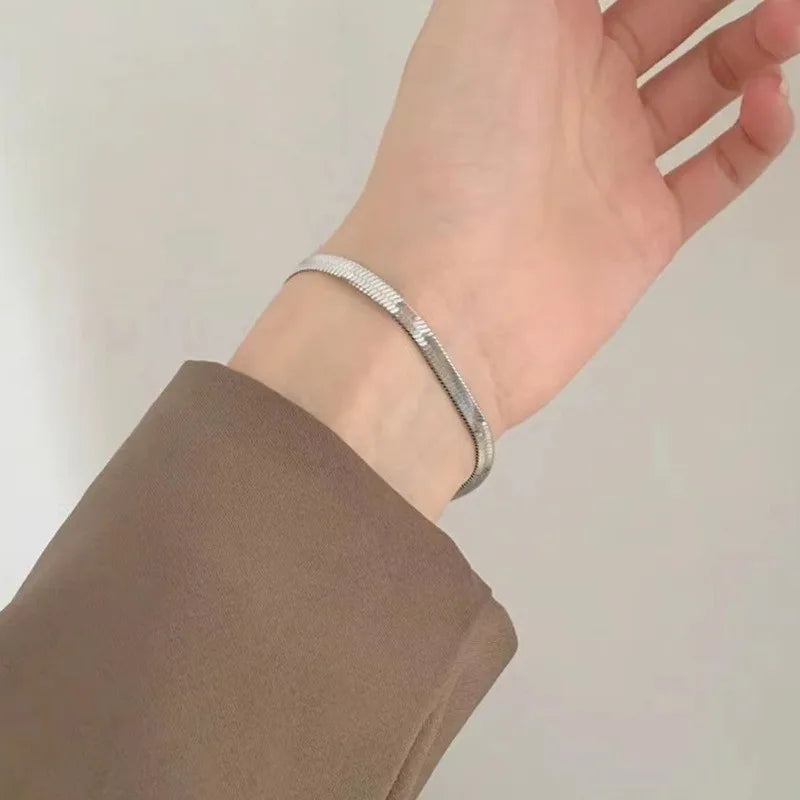 Ce bracelet fin en acier argenté séduit par sa simplicité. Son design épuré et sa brillance subtile en font une pièce idéale pour compléter vos tenues avec élégance et discrétion.