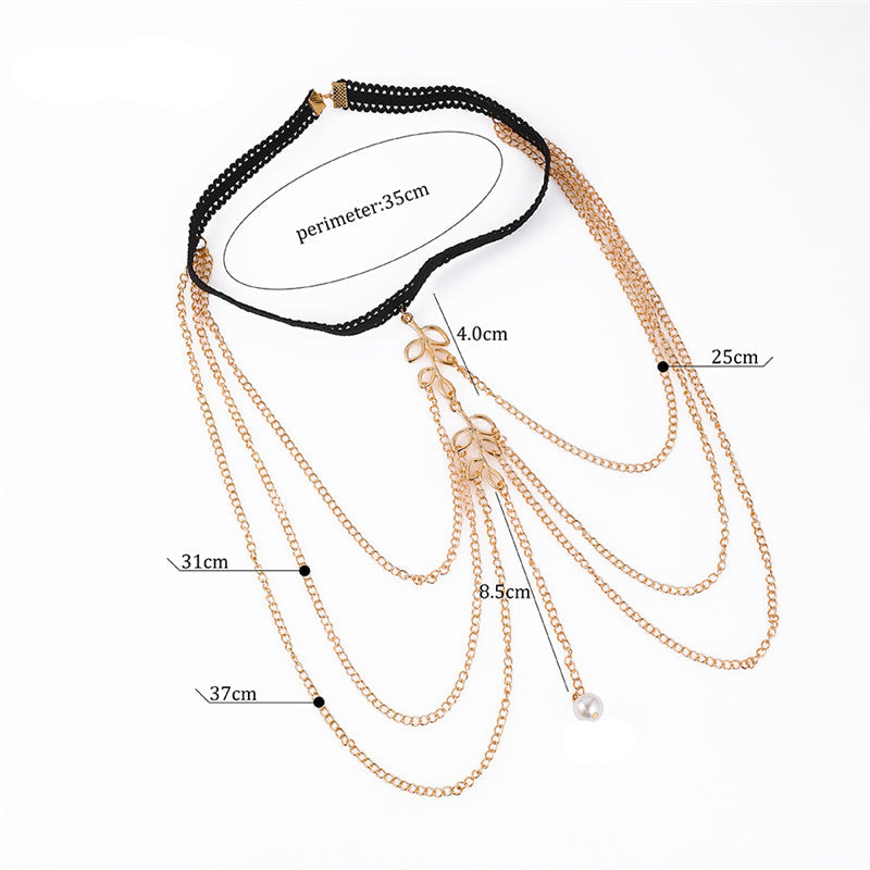 - Chaînes fines dorées en cascade avec une perle centrale en finition